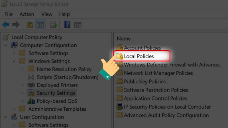Chọn và nhấn đúp vào Local Policies
