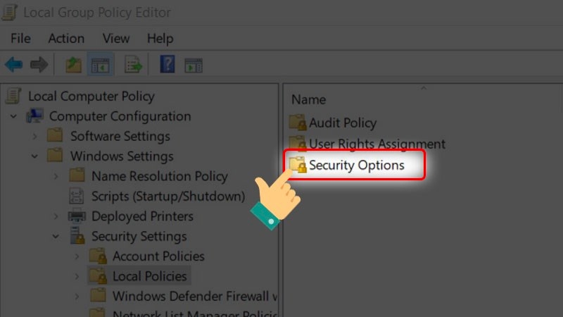 Nhấn tổ hợp phím Windows + R để mở hộp thoại Run > Nhập lệnh "gpedit.msc" vào ô Open > Nhấn OK > Chọn Windows Settings > Chọn Security Settings > Nhấn vào Local Policies > Chọn và nhấn đúp vào Security Options.