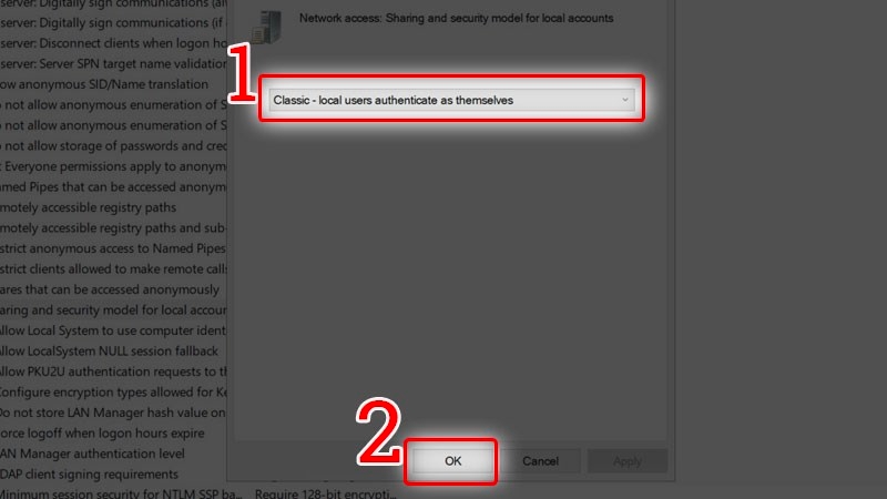 Bước 9: Chọn mục Classic: Local users authenticate as themselves và nhấn OK để hoàn thành.