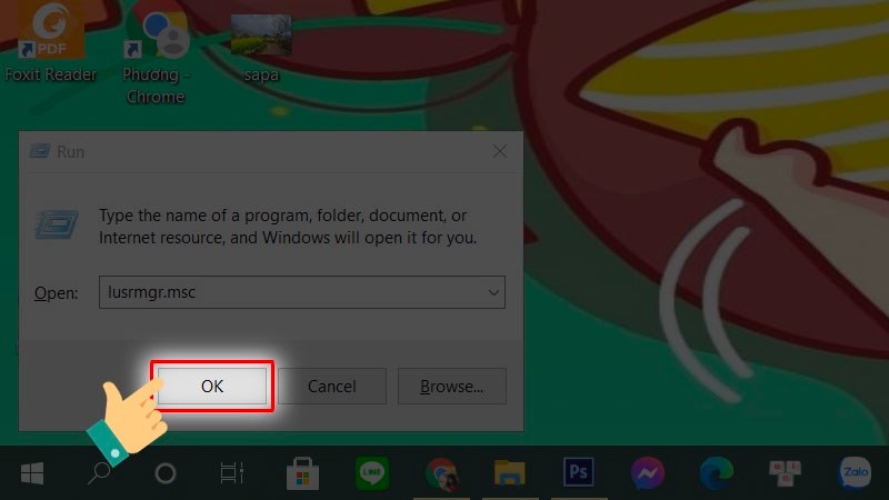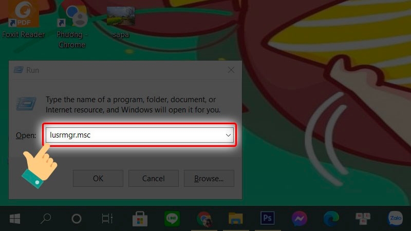 Nhập lệnh “lusrmgr.msc” vào ô Open