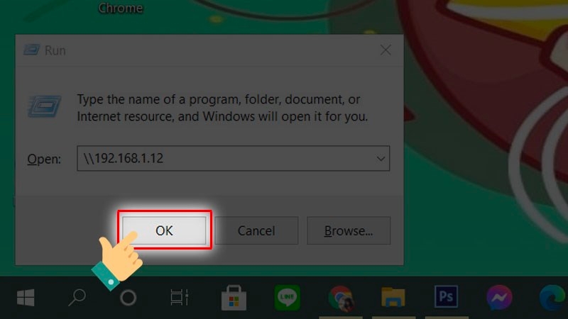 Nhấn tổ hợp phím Windows + R để mở hộp thoại Run > Nhập địa chỉ IP của máy ở ô Open (theo định dạng \ + ip của máy) > Sau đó nhấn OK.