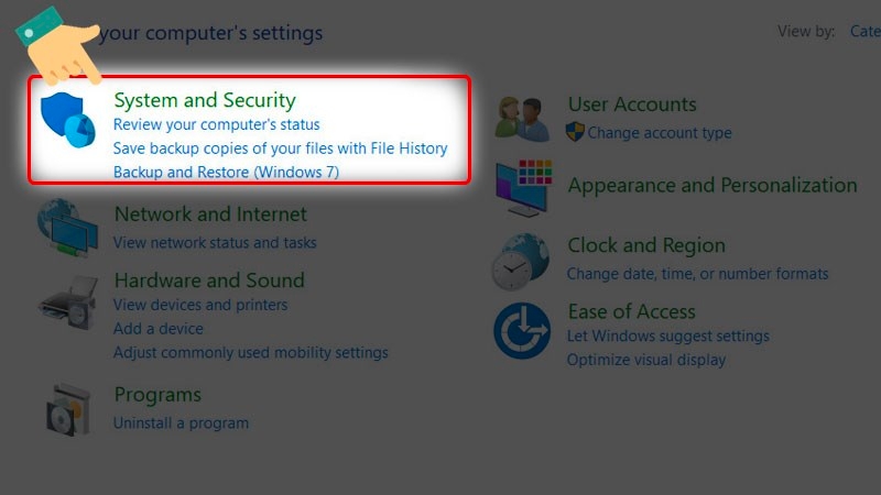 Bước 2: Chọn System and Security.