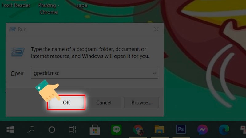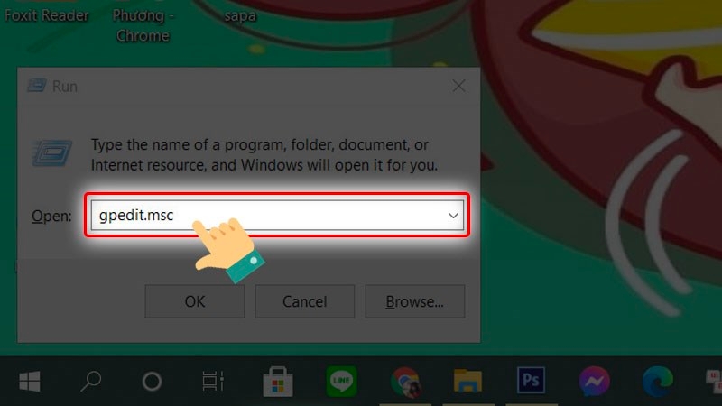 Nhập lệnh "gpedit.msc" vào ô Open