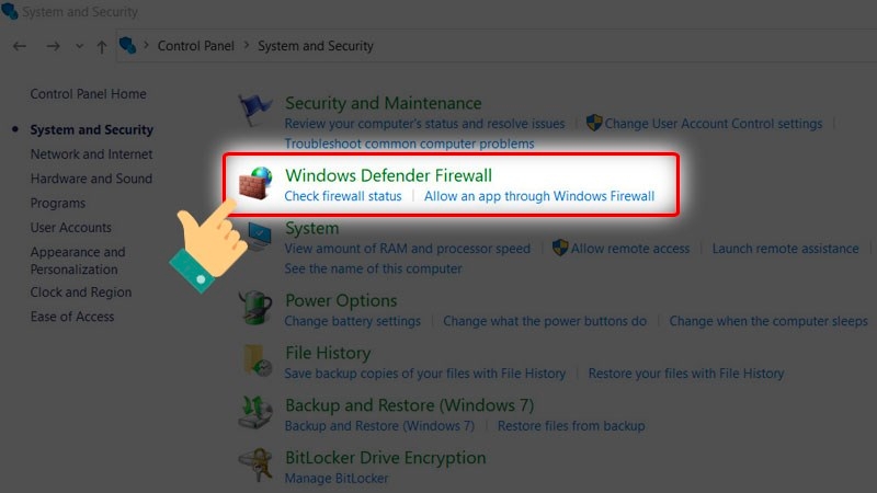 Chọn Windows Defender Firewall