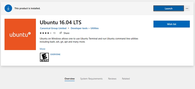 Cài đặt WSL hết sức đơn giản, chỉ cần mở Store của Window 10 và gõ "Ubuntu 16.04" và thực hiện cài đặt
