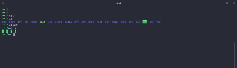 Trong hình trên khi di chuyển đến thư muc mnt